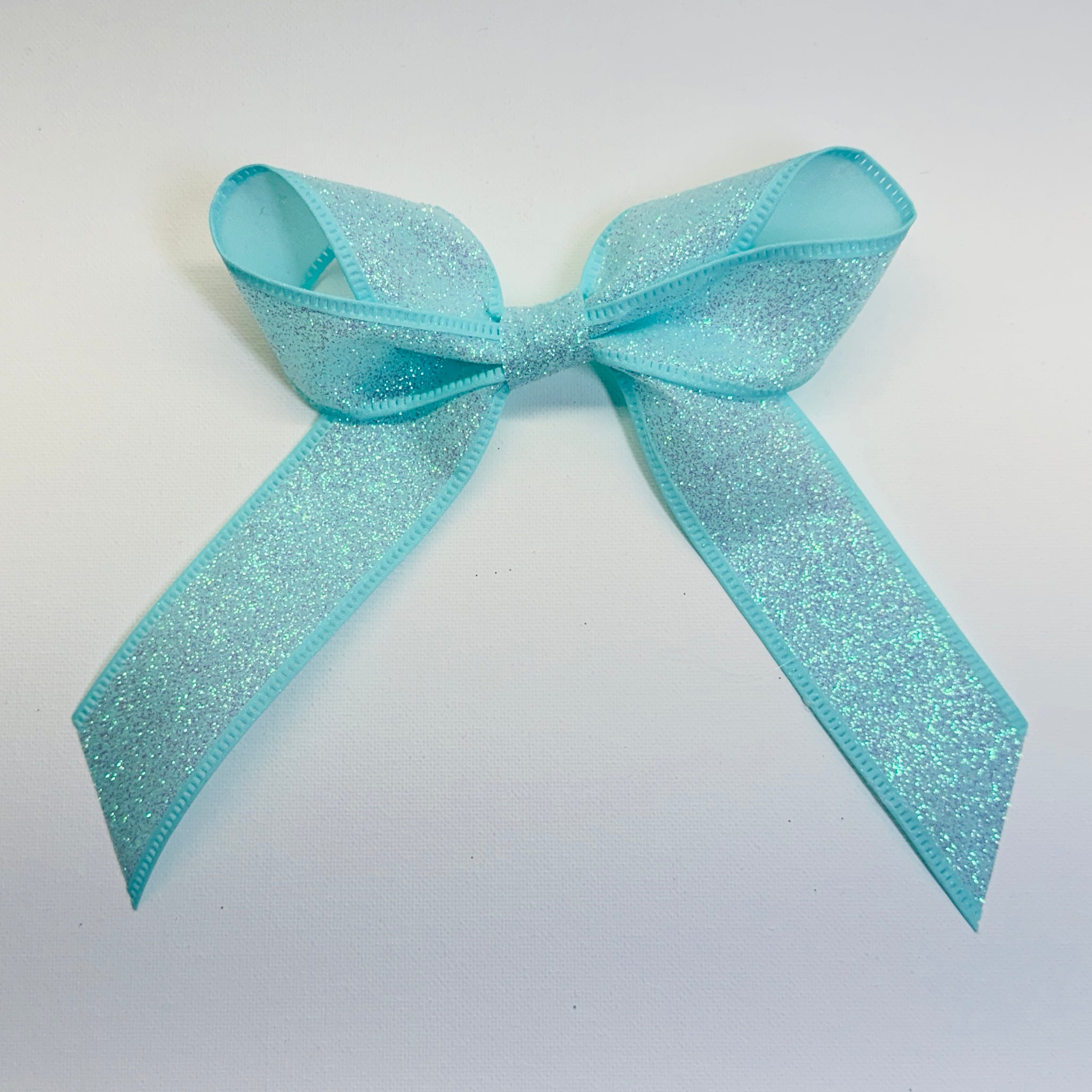 The Teal Sparkle Zoey Bow is a vibrant unique colored bow sparkling with glitter, catching the light with every movement. The unique color paired with shimmering sparkle makes it a standout accent for gifts, hair accessories, or festive decorations. Perfect for adding a playful yet elegant touch to any occasion.